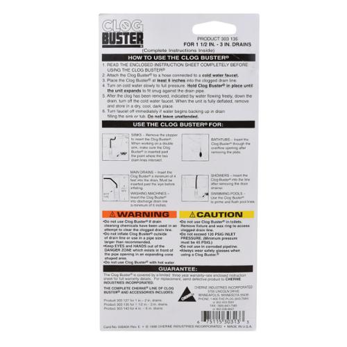 Cherne® Clog-Buster® Drain Flusher, Specifications: 1-1/2 to 3 in, Import