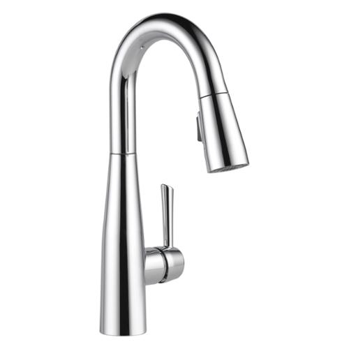 DELTA® Bar/Prep Faucet, Pull-Down, Essa® Collection, 1.8 gpm Flow Rate, 8 in Center Distance, High-Arc Spout, 6-5/8 in Spout Reach, 14 in Spout Height, 1 Handles, 1 Faucet Holes, 1-1/4 to 1-1/2 in Faucet Hole, 3/8 in Connection, Compression Connection, 2-1/2 in Maximum Deck Thickness, Deck Mounting, Euro-Motion DIAMOND™ Seal Valve, Metal, Polished Chrome