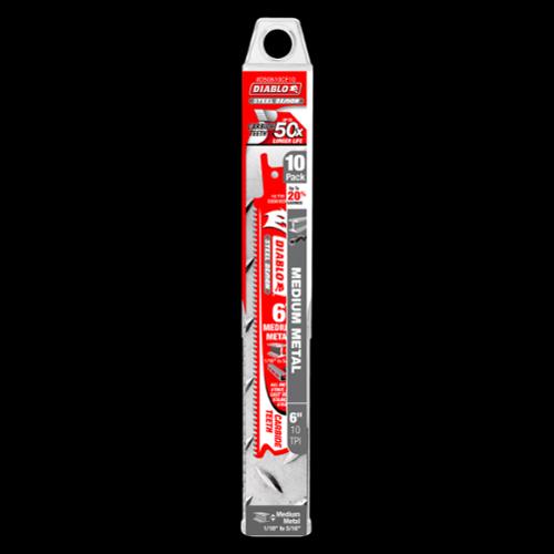 Diablo®, DS0610CF10, Reciprocating Saw Blade, 6 in Length, 10 TPI Teeth per Inch, Carbide Cutting Edge, Applicable Materials: Strut/Pipe/Cast Iron/Stainless Steel and all other Metals
