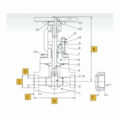 Sharpe® Gate Valve, Series: 34834, 3/4 in Nominal, Socket Welded End Style, 1975 psi Pressure, 800 lb Pressure Class, -20 to 800 deg F, Reduced Port, Handwheel Actuator, 3.58 in Inlet to Outlet Length, 6.3 in Top to Inlet Center, Steel Body, 316 Stainless Steel Trim, Stellite Seat/Graphite Packing Softgoods
