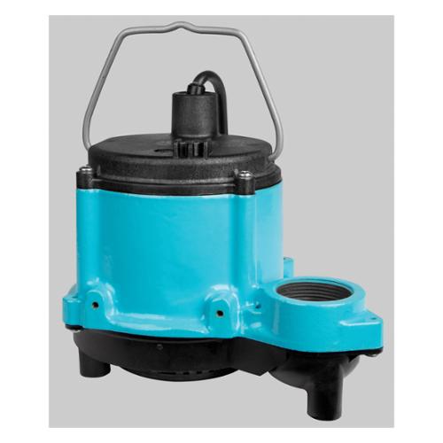 Little Giant® Submersible Sump Pump, Series: 6 Series, 46 gpm Flow Rate, 1-1/2 in FNPT Outlet, 18 ft Maximum Head, 15 ft Maximum Suction Lift, 1/3 hp, 115 V AC, 9 A, 50/60 Hz Frequency, 1 ph ph, 7.8 psi Maximum, SJTW 18/3 AWG 10 ft Cord, Nylon Non-Clogging Impeller, Upper and Lower Sintered Sleeve Bearing, 9.5 in L x 7.2 in W x 7.25 in H Dimensions, Domestic/Import: Import
