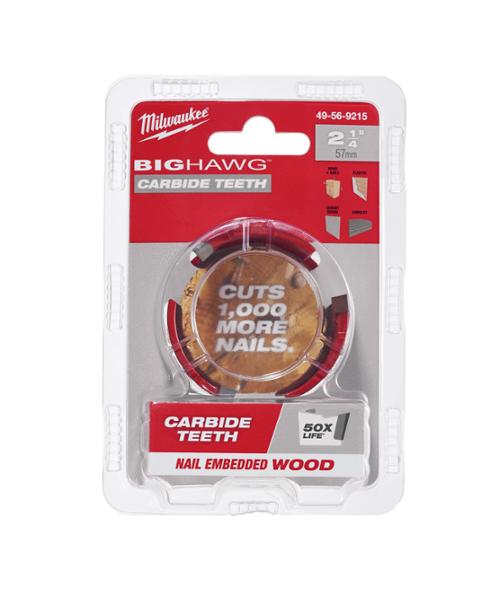 Milwaukee® Big Hawg™ with Carbide teeth is first-to-market in providing extreme life and durability in both nail-embedded wood and abrasive material applications. Utilizing advanced Carbide technology, the new Big Hawg™ with Carbide teeth gives users 50x life in demanding applications with the ability to cut 1000+ more nails. 10X larger Carbide teeth rip through materials 5X faster while deeper slots make for fast and easy plug removal. Big Hawg™ with Carbide teeth allows users to cut through the toughest materials including nails, cement board, shingles, plaster and stucco.