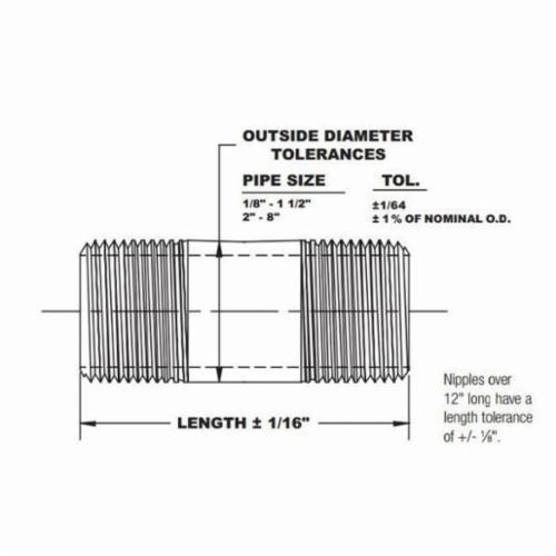 Beck® Pipe Nipple, Series: FIG 320, 1/2 in Nominal Size, MNPT, 4 in Length, SCH 40/STD, Seamless, Carbon Steel, Black, 0.84 in OD