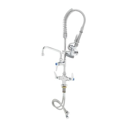 T & S Pre-Rinse Unit, Mini, 1.15 gpm Flow Rate, 7-3/8 in Spout Reach, 7-13/16 in Spout Height, 24 in Hose, Lever Handle, Side Spray(Y/N): No, 1-1/2 in Faucet Hole, 1/2 x 5/8 in Connection, Male NPSM x Compression Connection, 1-1/4 in Maximum Deck Thickness, Deck Mounting, Quarter-Turn Eterna Compression, 24-13/16 in H Dimensions, Brass, Polished Chrome, Domestic